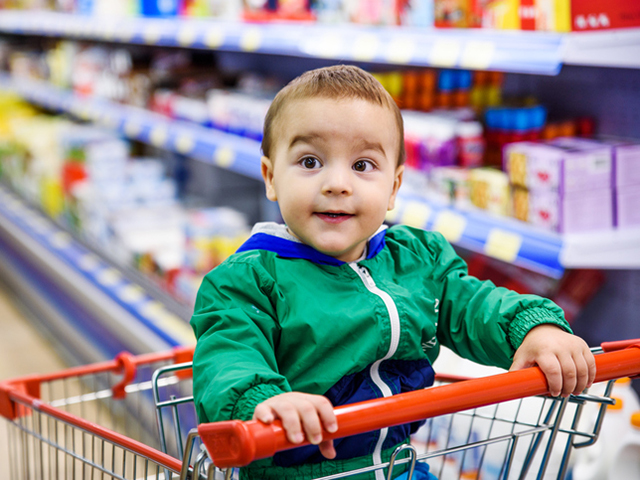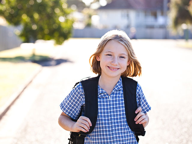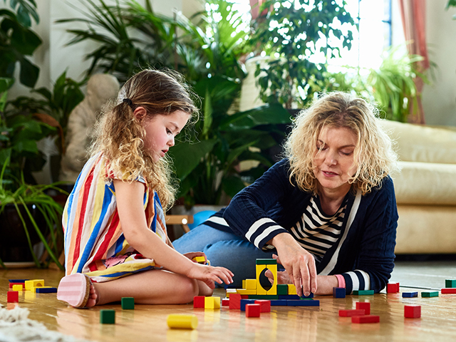 a fair skinned child with a ball and book, a fair skinned female with her hand on the boys shoulder