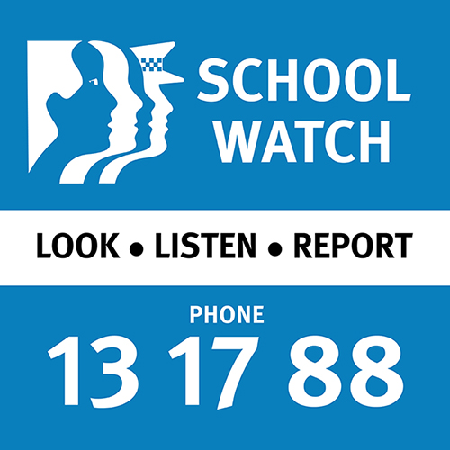 Look, Listen, Report. Call School Watch on 13 17 88.