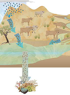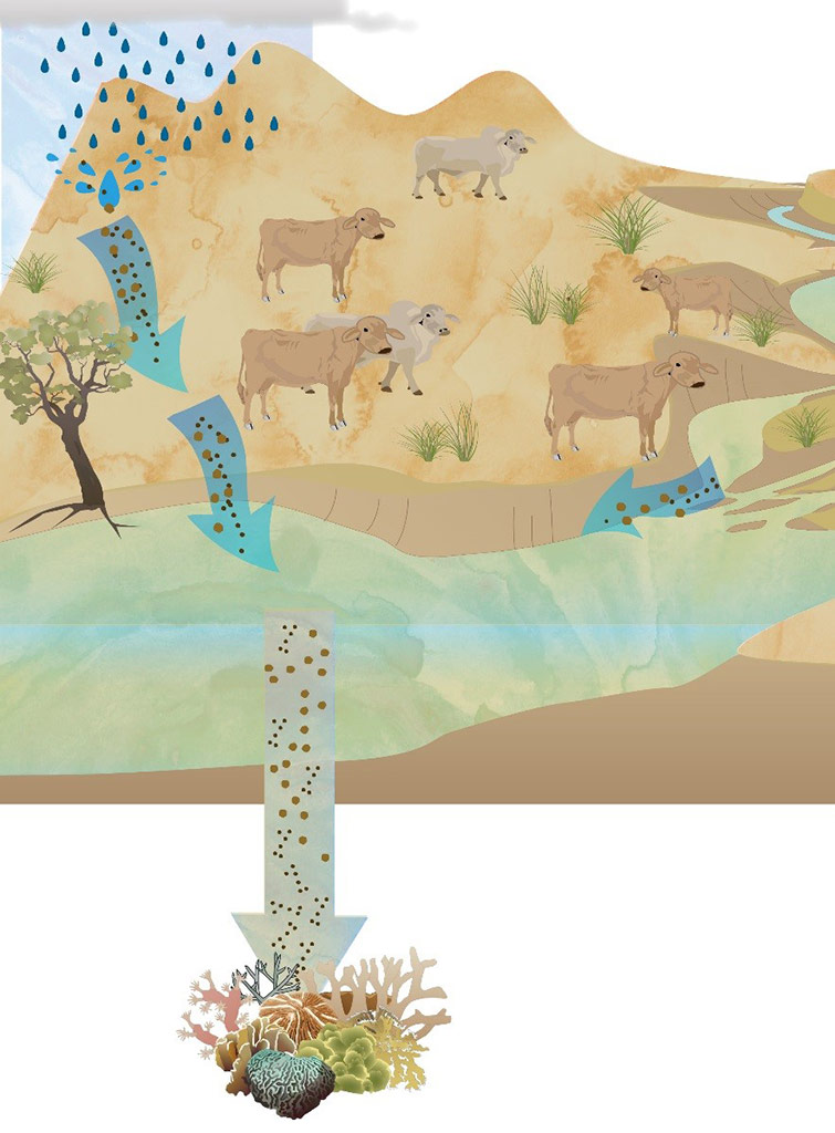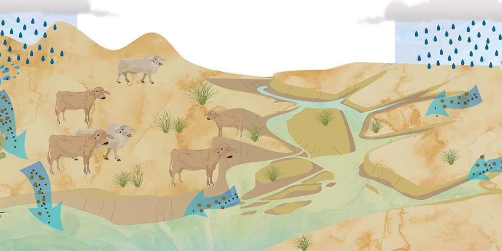 This reduces productivity and means fewer, less healthy cattle on the land. Sediment discharged from rivers in excess of natural erosion rates is a key contributor to the declining health of Great Barrier Reef ecosystems.