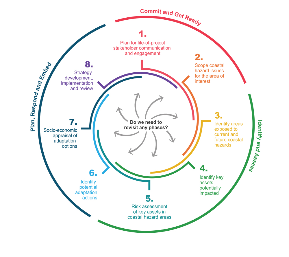 • assesses the risks from coastal erosion, storm tide inundation and the projected effects of sea level rise from climate change over the short (present day), medium and long-term