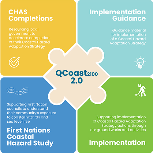 In September 2021, the Queensland Government announced an additional $3 million to QCoast2100 2.0 with a focus on implementing works and actions identified in a CHAS, so councils can continue on the adaptation pathway.