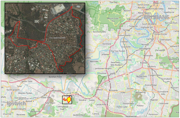 Location: 10km east of Ipswich, Latitude -27.610590 Longitude 152.867630