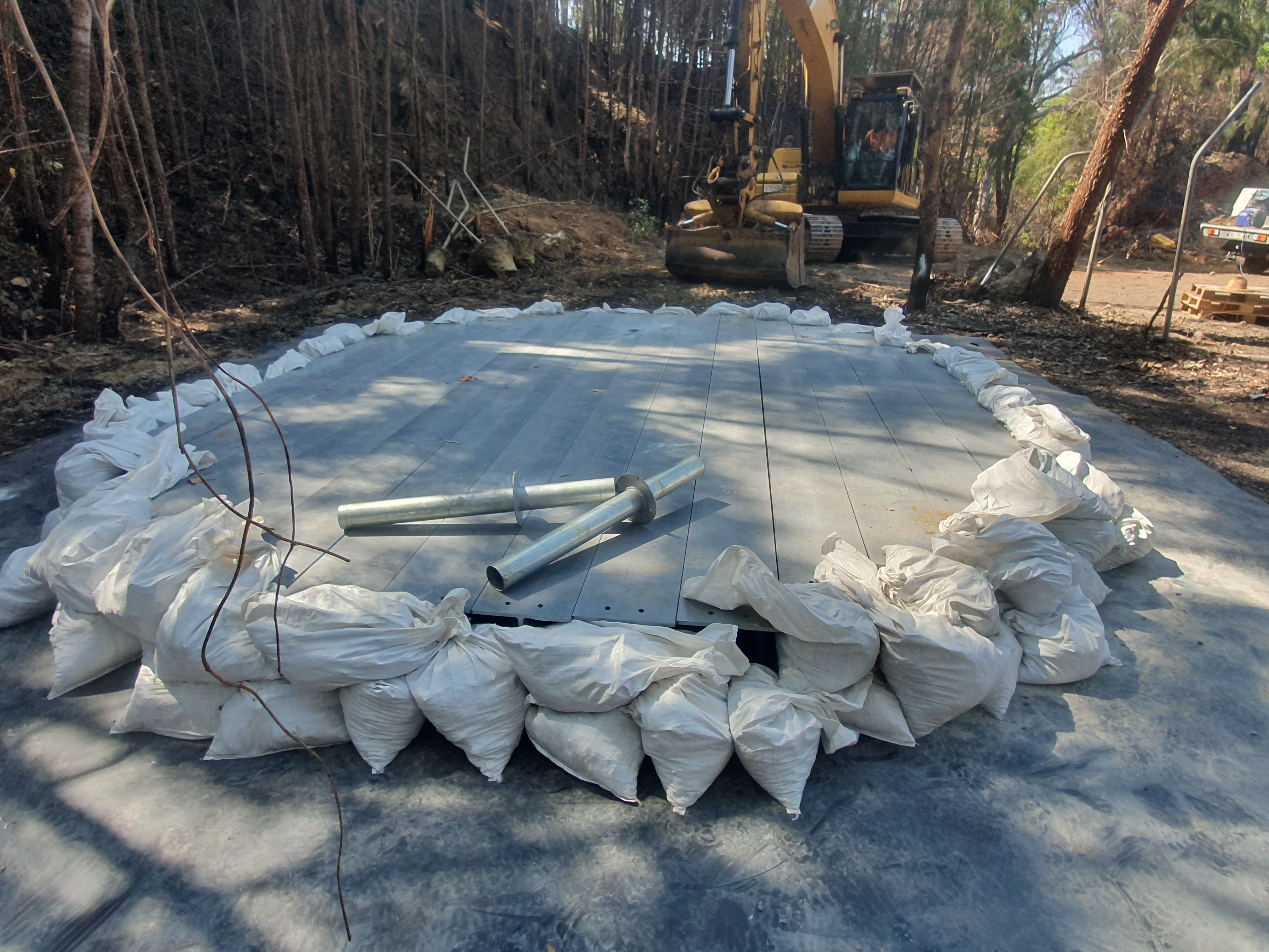 - Reshaping and stabilising the processing area into 3 large terraces with associated drainage