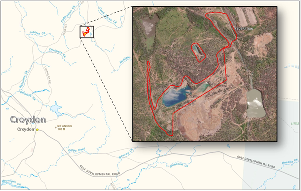 The Federation site consists of 2 open-cut pits, an underground portal or entrance, heap leach pads, waste rock stockpiles, unmaintained infrastructure, the Golden Gate tailings storage facility and the Glencoe pit.