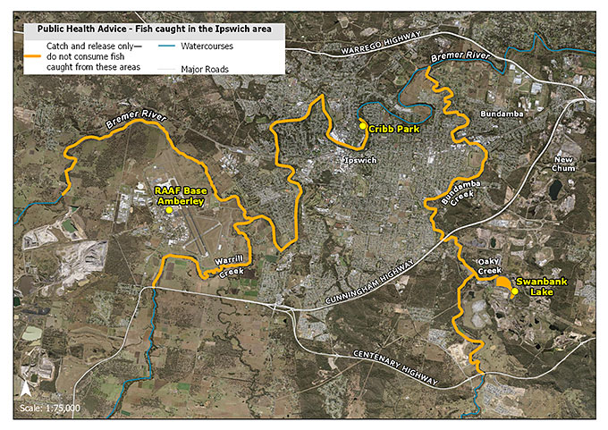 The Queensland Government and the Department of Defence have investigated per- and polyfluoroalkyl substances (PFAS) contamination of waterways in the Ipswich area. The areas investigated include the Bremer River, Warrill Creek adjacent to RAAF Base Amberley, Swanbank Lake, Bundamba Creek and Oaky Creek.