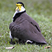 Medium-sized birds, lapwings are brown with a black crown and white underparts. They have long red legs and grow to about 35-38cm. With bright yellow wattles on their forehead and face, and a small spur on the edge of their wing, they are hard to mistake (and frightening if they attack!).