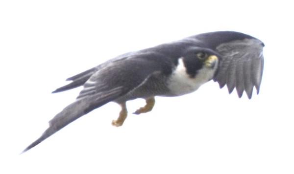 With its forward-facing eyes, glare-reducing black face, the ability to rapidly focus on an object while in flight and strong (full colour) binocular vision eight times better than our own, these birds can see their prey from a distance of more than three kilometres. Deep chest (pectoral) muscles power their finely tapered wings giving the peregrine both the aerial speed and manoeuvrability it needs to pursue and overtake other birds in flight. For catching its prey it is equipped with large feet and sharp talons (claws). And if the impact of being hit by a swooping falcon doesn't kill a bird instantly, it has a sharp, notched upper bill that can quickly sever a bird's spine.