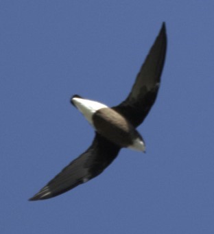 There are few birds that could ever rival a peregrine falcon for speed. One is the white-throated needletail, also known as the spine-tailed swift. The needletail migrates from Southeast Asia in Spring and is a regular sight on cloudy summer days as it rides incoming storm fronts to feed on flying insects - often in loose flocks of hundreds of birds.