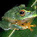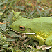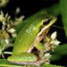 Also known as the graceful tree frog (Litoria gracilenta), this pretty amphibian is leaf-green, usually with a yellowish-green stripe over the eye. Fingers, toes and upper arms are a bright lemon yellow.