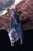 Description: The northern leaf-nosed bat is a type of micro bat, and weighs 4.6–6.4 g. It has long fur that is grey-brown in colour and is lighter on its belly. The northern leaf-nosed bat is similar in appearance to Semon's leaf-nosed bat, with narrow, pointed ears, and two wart-like projections on the nose-leaf. However, the northern leaf-nosed bat can be distinguished from Semon's leaf-nosed bat by its smaller size, less prominent nose-leaf, and smaller nose-leaf projections.