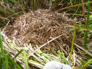 It is important to identify possible estuarine crocodile nests as there is usually a very alert and mobile female guarding it.
