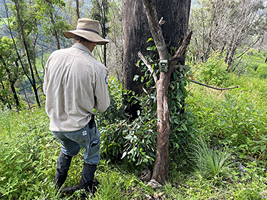 Information regarding the presence and location of pest animals was also captured during the ecological surveys by utilising the many camera traps set up to specifically target priority threatened species. By the end of the project, these results provided a richer insight into the threats to recovering wildlife populations. Across Lamington, Mt Barney and Main Range National Parks, feral cats were detected at 32 different camera sites, foxes at 7 sites, feral deer at 4 sites and pigs at 3 sites. This information is now guiding the ongoing pest animal control efforts through the second phase of the program in 2021–22.