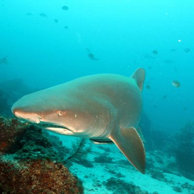 The grey nurse shark looks , but this docile species, faced with threats from fishing and slow breeding rates, needs support for a sustainable future.
