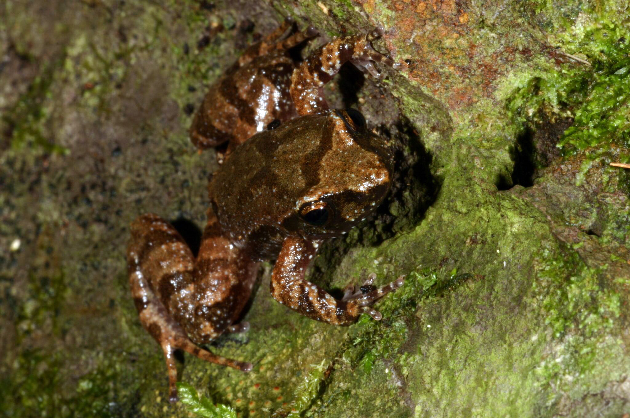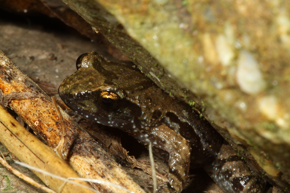 Tinker frogs are hard to find as they have markings and colouration that provide excellent camouflage in the wild. We only know this highly cryptic species is present when we hear its distinctive calling.