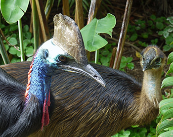 The cassowary's secretive and solitary nature makes them difficult to spot. You may hear their rumbling warning calls and grunts long before you see them.