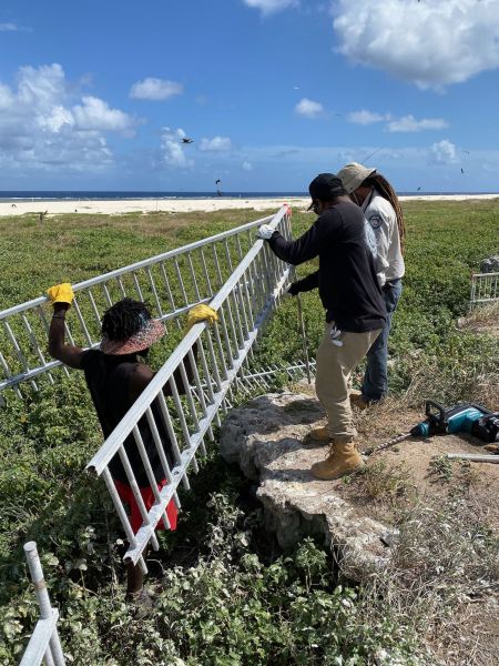 The team has also installed cliff-top fencing around the island to prevent turtles from falling on their backs and becoming unable to right themselves.