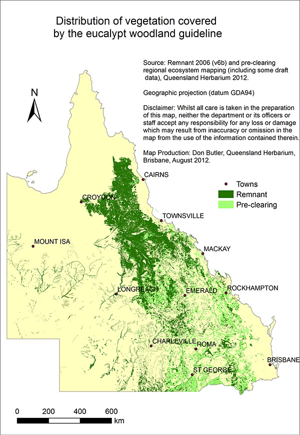 Eucalypt woodlands covered by the management guidelines on this website occur over a large area of eastern Queensland, from the New South Wales border to Cape York Peninsula.