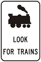 ![]() ![]() | Look for trains signs The signs are used where there are no traffic control signs for vehicles or pedestrians crossing the tracks. The sign may also show the number of tracks you will cross. |