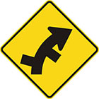 ![]() | S-lanes signs On a multi-lane divided road, this sign lets you know that the far left lane is ending. The remaining lanes bend to the left, to allow for a right turn only lane at the next intersection. You will see this warning sign before the lane ends. |